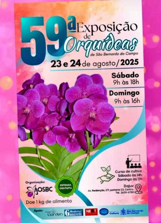Já nos dias 13, 14 e 15 de março, realiza-se, em São Paulo (Rua Galvão Bueno, 596 – Bairro da Liberdade), um dos acontecimentos mais aguardados do ano pelos orquidófilos de todo o País: a 109ª Exposição da Orquídeas da AOSP. O horário de visitação começa, cada dia, às 9h. Diariamente haverá aula grátis de cultivo de orquídeas, às 10h, 13h e 15h.